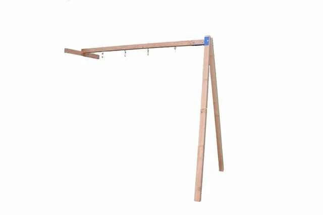 Aanbouw schommel in vierkant hout. Opgebouwd uit balken met afmeting 9 x 9 cm. en een metalen koppelstuk. Incl. ondersteuningsbalk. De koppelstukken zijn enkel leverbaar in de kleur blauw.
