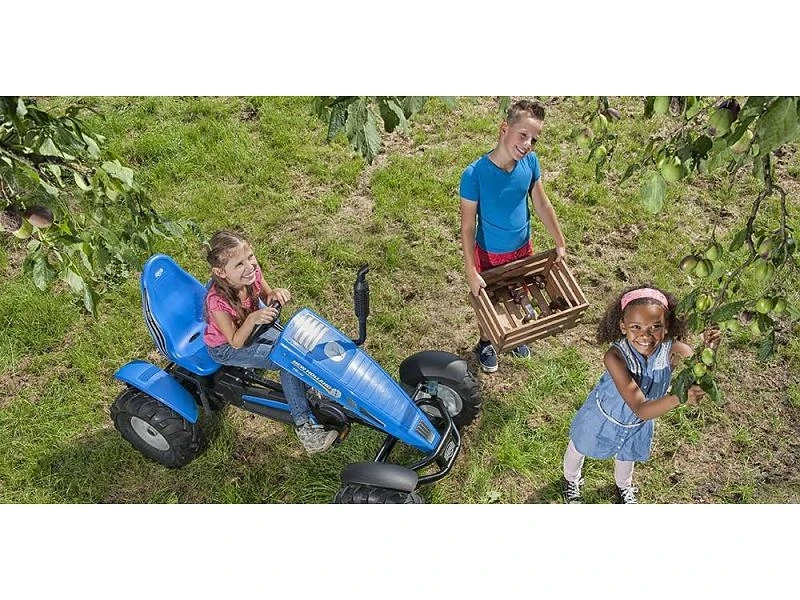 Deze blauwe spetter is klaar om met jou het boerderij avontuur aan te gaan! De BERG New Holland heeft indrukwekkende tractorbanden waarmee je optimaal veel grip hebt en een schommelas die je stevig op de grond houdt. Met het unieke BFR-3 systeem ben je door de drie versnellingen extra snel op jouw bestemming! Maak je New Holland skelter nog leuker met verschillende accessoires zoals een liftbakje, de palletvork of een rolbeugel met zwaailicht.