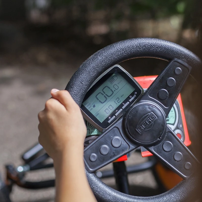 Met deze stoere E-BFR-3 skelter van kwaliteitsmerk BERG racet uw kind razendsnel over de weg heen. De skelter heeft de uitstraling van een echte racewagen en is voorzien van reflecterende spatborden. Het unieke E-BFR systeem met 250W E-Motor biedt trapondersteuning waardoor snelheden tot wel 16 km p/u behaald kunnen worden. Dit gebeurt ook nog eens honderd procent veilig doordat er zowel vooruit als achteruit getrapt kan worden en remmen een eitje is. De skelter heeft vier stevige luchtbanden en een schommelas voor stabiele wegligging. Op het display is de snelheid, afstand en accu capaciteit af te lezen. Door het robuuste frame is de skelter geschikt voor kinderen vanaf 5 jaar, maar ook voor volwassenen. De skelter zorgt voor urenlang plezier van jong tot oud!