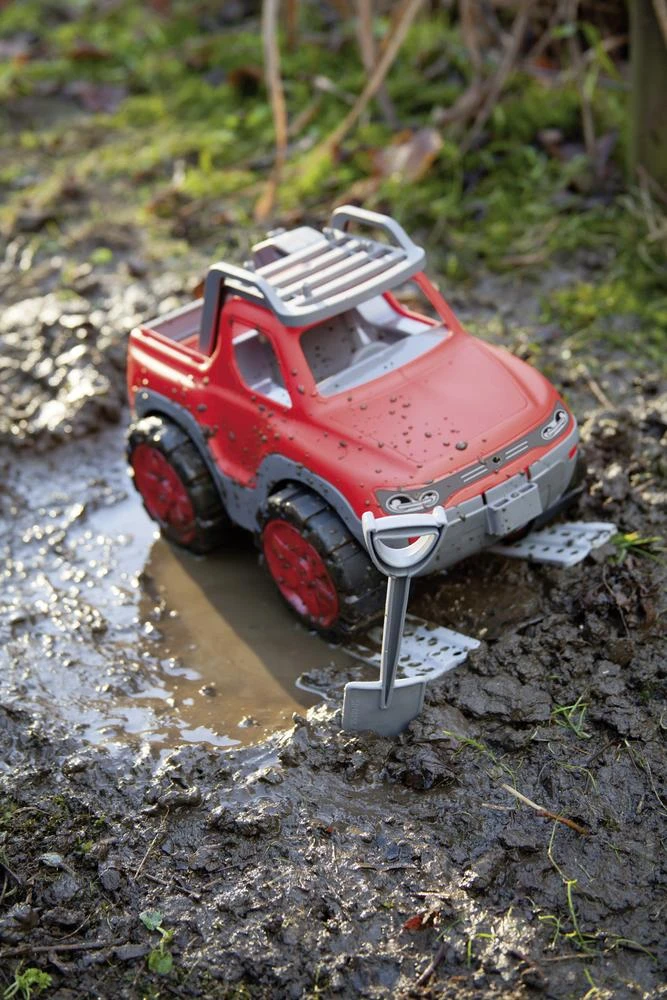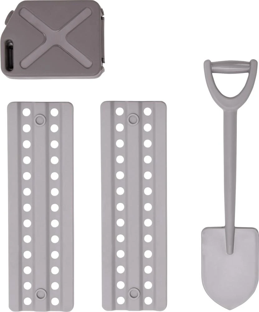 Deze pick-up is uitgerust met 2 rijplaten, een schep en een jerrycan. Dus wanneer de truck, ondanks zijn stoere terreinbanden toch vast komt zitten, graaf je de wielen vrij, leg je de rijplaten onder de wielen en kun je alsnog je weg vervolgen. Met de jerrycan kun je ook altijd wat extra benzine meenemen.