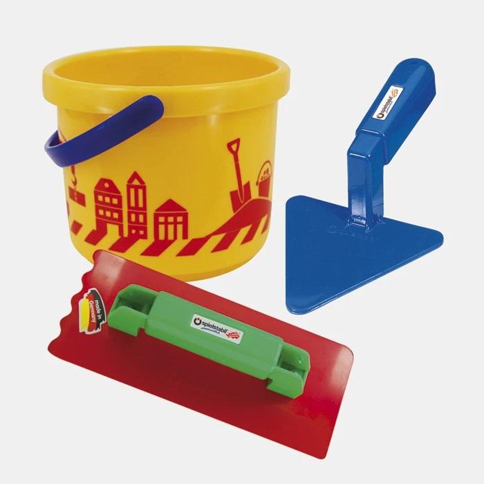 Zandbakspeelset bestaande uit een kleine emmer, troffel en slicht.
