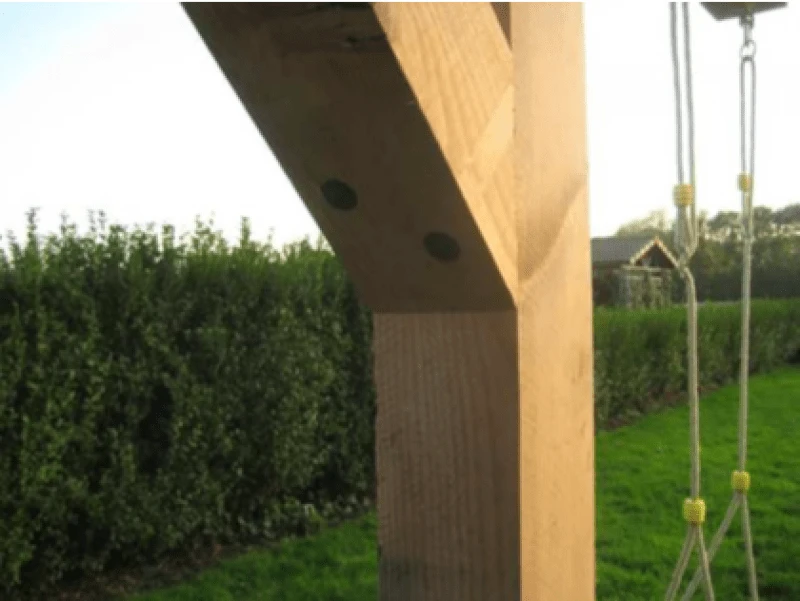 Schommelframe uit eerste klas douglas hout 145 x 145 mm. Niet geïmpregneerde uitvoering .