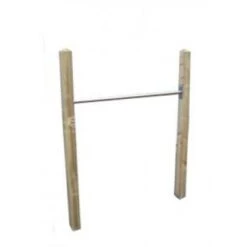 Een eenvoudig maar dankbaar speeltoestel. Het pakket bestaat uit 2 geïmpregneerde vierkante houten palen van 9 x 9 cm. met diamantkop en een roestvast stalen  stang met een breedte van 90 cm. incl. bevestigingsmaterialen.