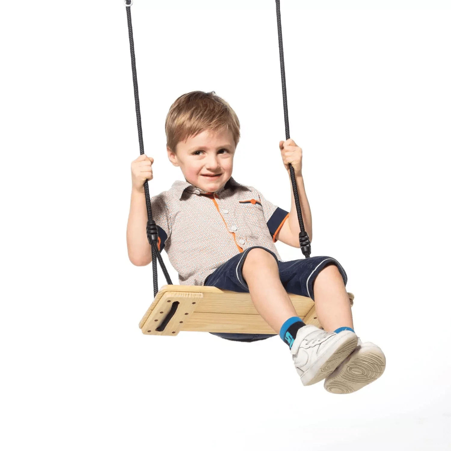 Geimpregneerd houten zitje (black-rope) gevlochten touw