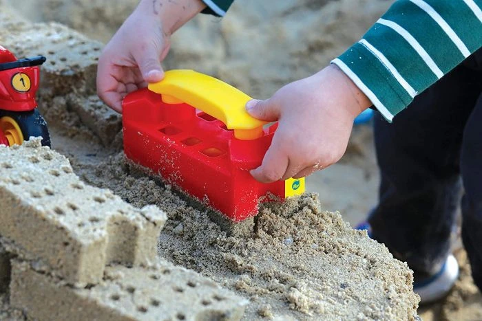 Vul de baksteenvorm met zand of sneeuw; de handgreep komt naar boven. Druk vervolgens de handgreep naar beneden en zie daar de perfecte steen uit de vorm komen; het begin van een mooi bouwwerk voor de kleine metselaar. Gemaakt uit hoogwaardige en veilige materialen.