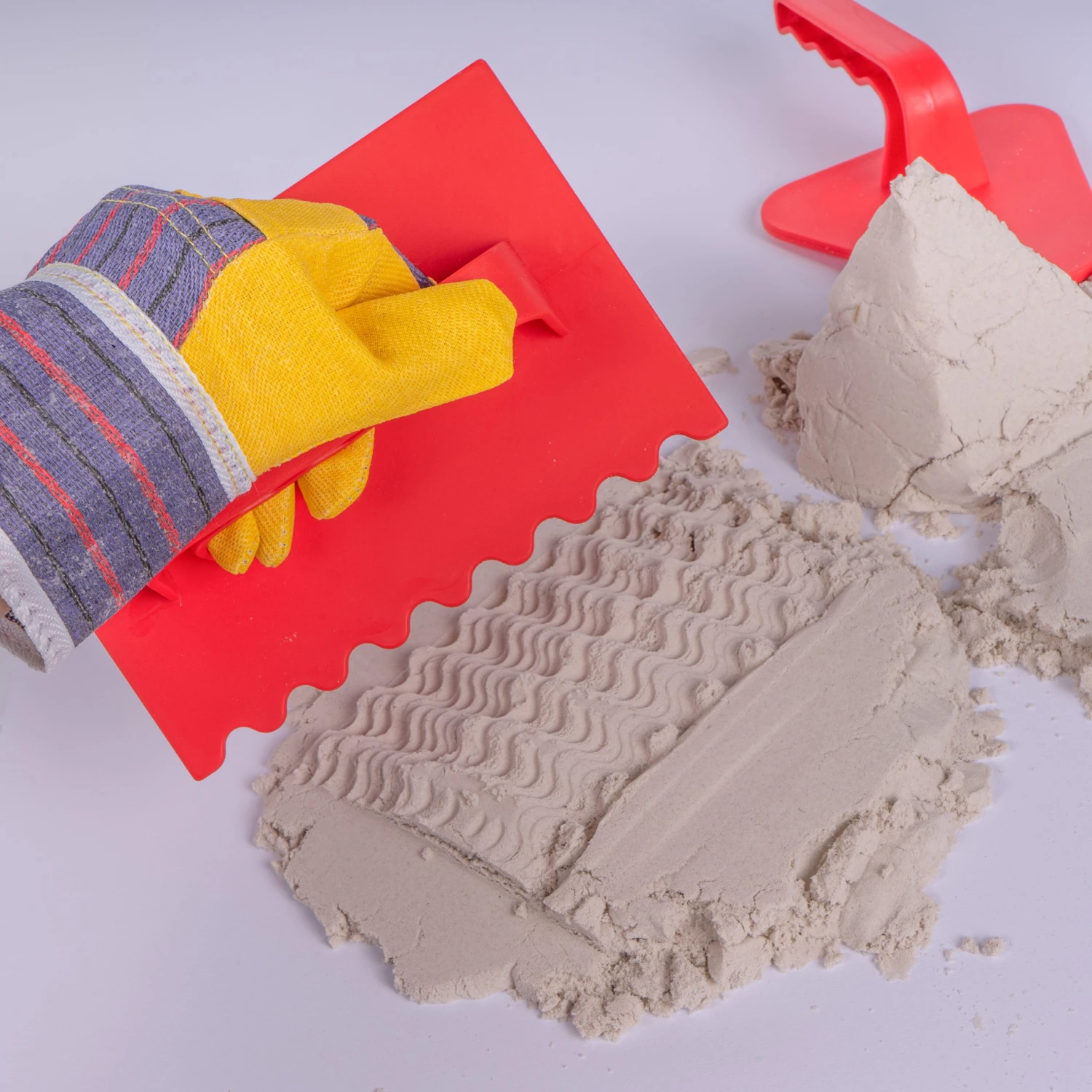 Met deze set kunnen de kleine bouwers helemaal los gaan in de zandbak. Zandhopen worden met de troffel glad gestreken en op de paan wacht vers zand op zijn inzet. Bovendien kan mn met de gekartelde kant van de spaan mooie patronen in het zand trekken.