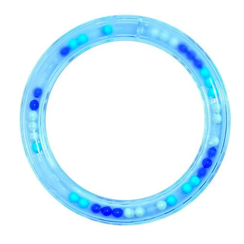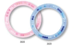 De klassieke rammelaar ring voor baby’s gemaakt van hoge kwaliteit doorzichtige kunststof in roze en lichtblauw. Het geluid van de 27 balletjes geeft een aangenaame ratelend geluid. Het veranderende patroon op de binnenkant van de ring en de drie verschillende kleuren balletjes geven een visueel effect. Vaatwasmachinebestendig en robuust materiaal zonder schadelijke stoffen.