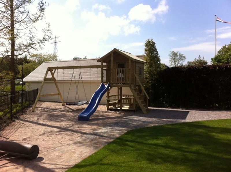 Allerlei aanbouwmogelijkheden zijn optioneel. Hierbij kunt u denken aan: klimwand, glijbuis, schommelframe of bijvoorbeeld een loopbrug.