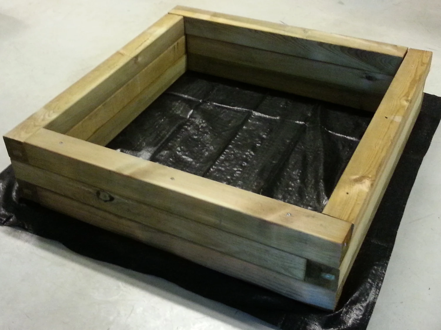 Zandbak in balkjes, geimpregneerd vurenhout. Balkjes met afm. 9 x 9 cm. Zeer robuust. Uitermate geschikt voor zandbakken met ruime afmetingen.