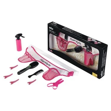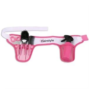 Speciaal voor de kleine kappers. Complete kappersgordel met toebehoren (Braun Satin Hair 7 borstel, kam, schaar, spuit en haarspeldjes). De batterij voor de borstel is niet inbegrepen.