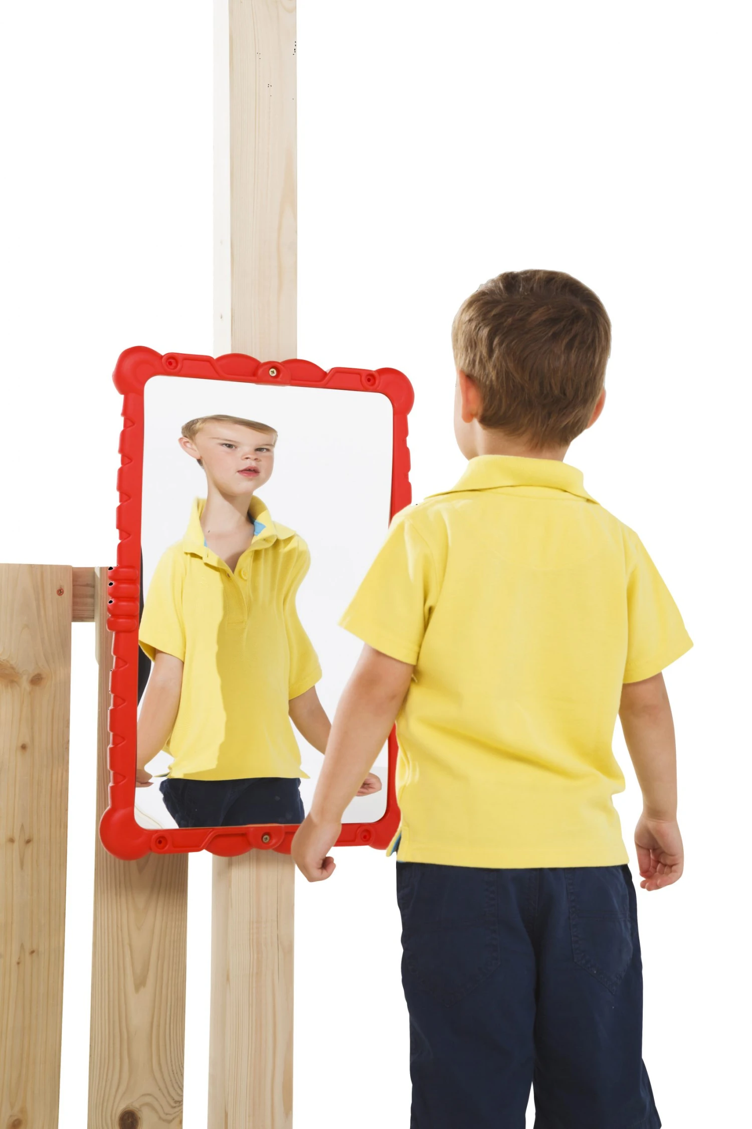 Haha…Dat wordt lachen. Het spiegelbeeld wordt vervormd.