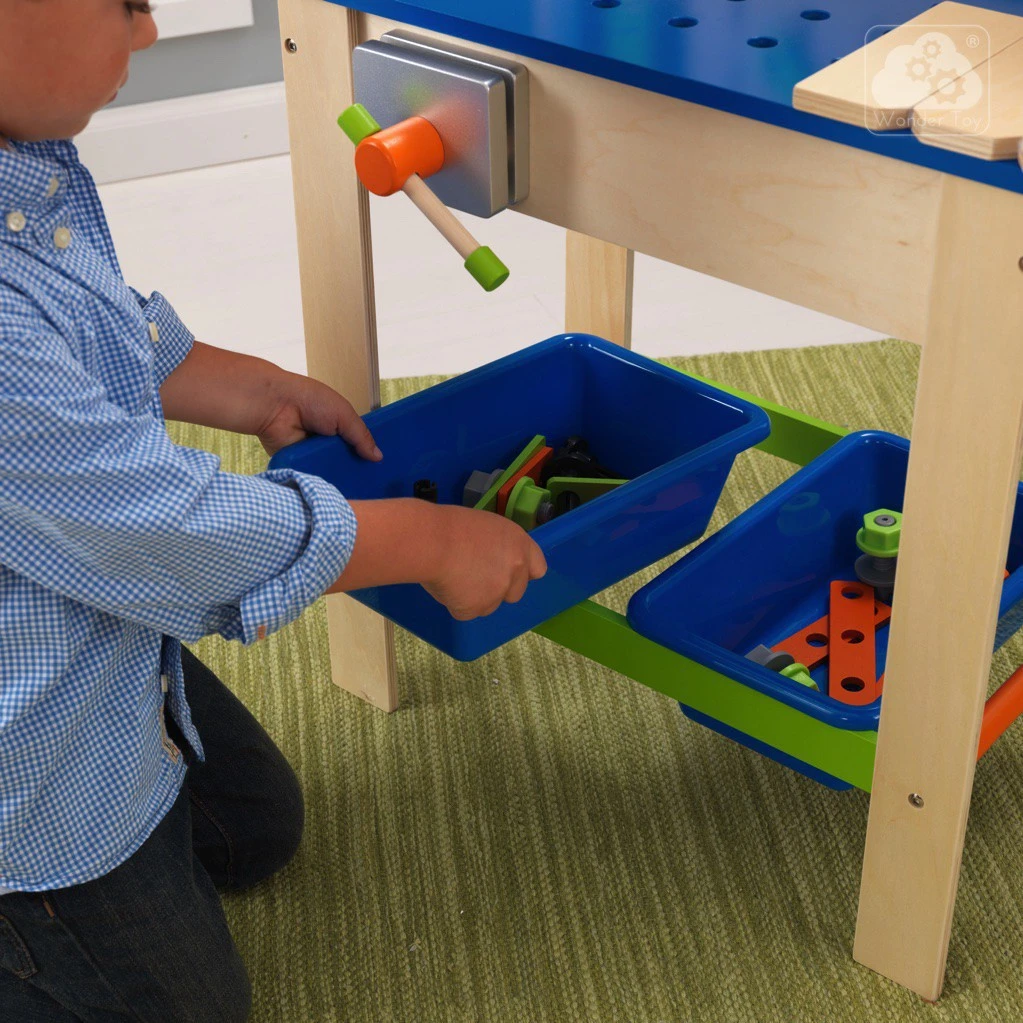 Deze werkbank zit boordevol leuke details en interactive onderdelen waar jonge kinderen dol op zijn.