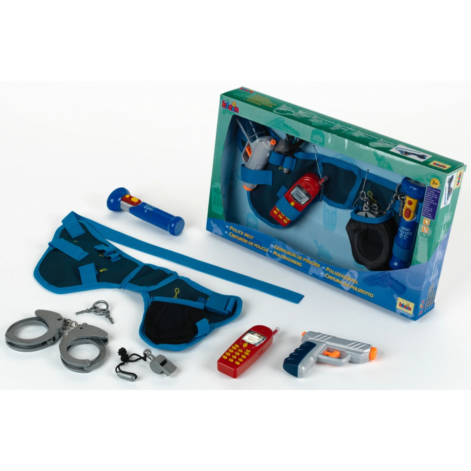 Stoere gordelset met allerlei toebehoren welke een agent altijd direct bij de hand moet hebben om zijn werk naar behoren te kunnen doen nl. een zaklamp, handboeien, pistool, fluit en GSM.