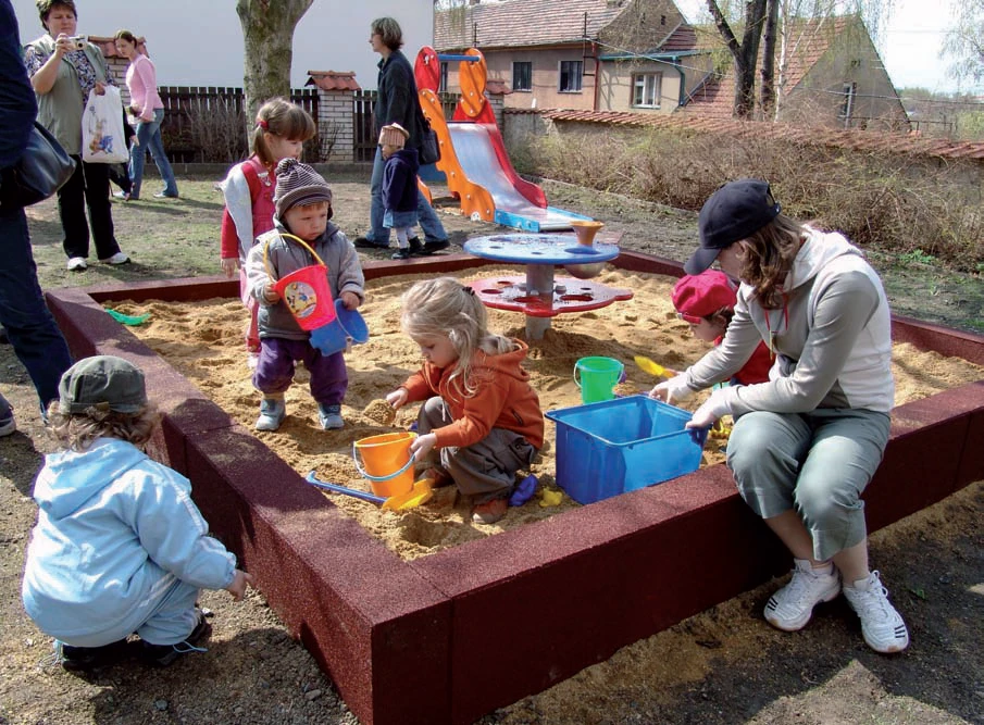 De rubber bielzen zijn onderling te verlijmen en zorgen ervoor dat kinderen zich niet bezeren aan de rand van de zandbak. Afmeting 100 x 30 x 15 cm.