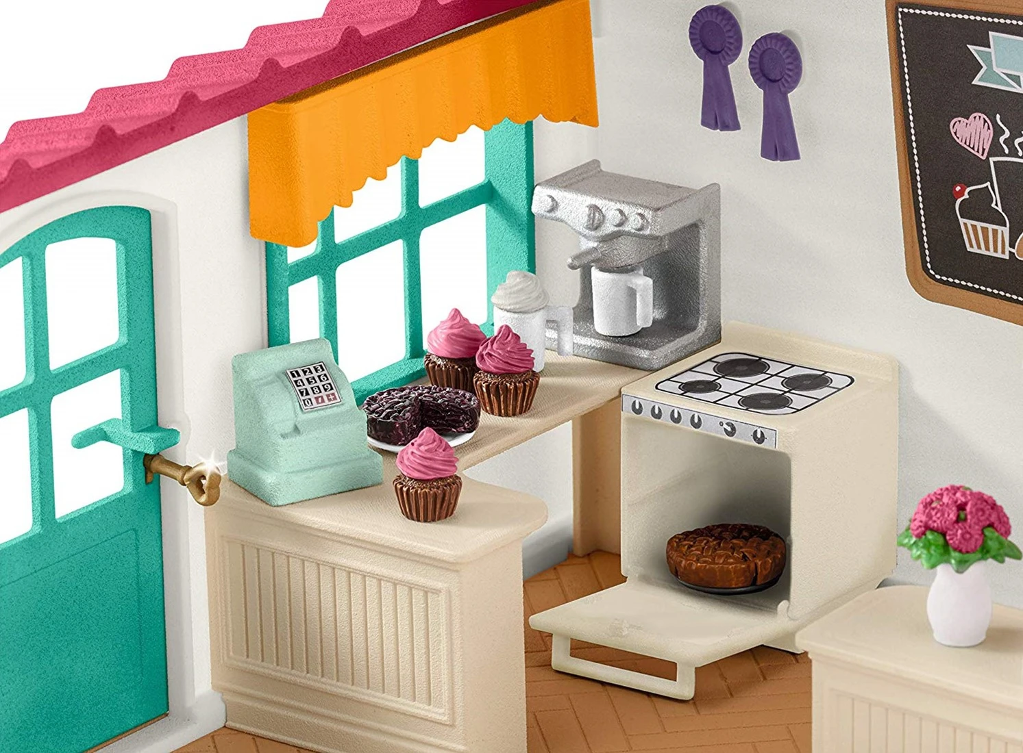 - Bevat een menubord, baksels, keukenapparatuur, een koffiemachine, een kassa en andere accessoires voor uren speelplezier.