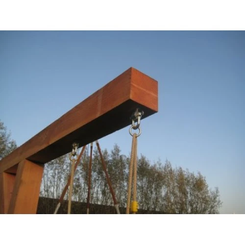 Standaard is deze schommel voorzien van 3 schommelhaken. zo is er plaats voor een schommelzitje en bijvoorbeeld een klimtouw of schotelschommel.