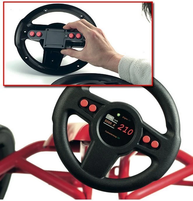 Dit Ferbedo 090002 Soundstuur compleet met soundbox en 4 geluiden kan op meerdere Ferbodo voertuigen worden uitgewisseld tegen het originele stuur. De 4 geluiden zijn: Starten, Accelereren, Remmen, Toeter.