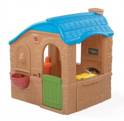 Dit fraaie speelhuisje zorgt, dankzij de neutrale kleurstelling en natuurlijke vormen voor een charmante blik in uw achtertuin. Het gedetailleerde interieur is voorzien van een open haard, een kitchenette met gootsteen, draaibare kraan en gasfornuisje. Tevens zijn een deur, brievenbus en  ingebouwde bloemenbak voorzien. Stahoogte binnenin 137 cm.