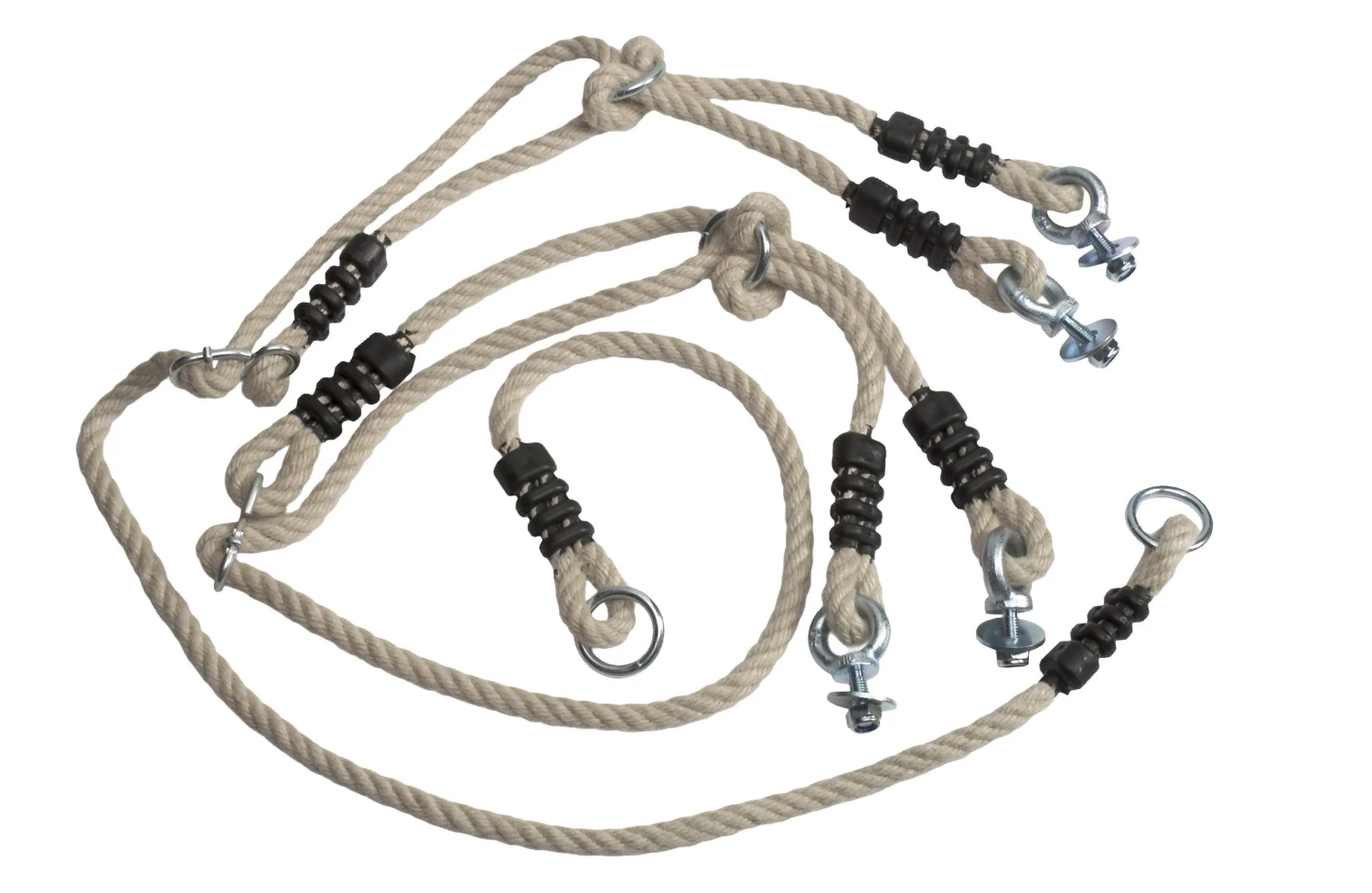 De losse touwenset voor de autobandschommel met 4-puntsophanging. Hiermee kunt u (wanneer u een autoband ter beschikking heeft) zelf een autobandschommel maken.