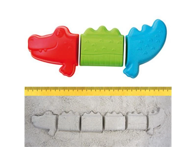 Set bestaande uit 3 zandbakvormpjes waarmee je een oneindig lange krokodil kunt maken.